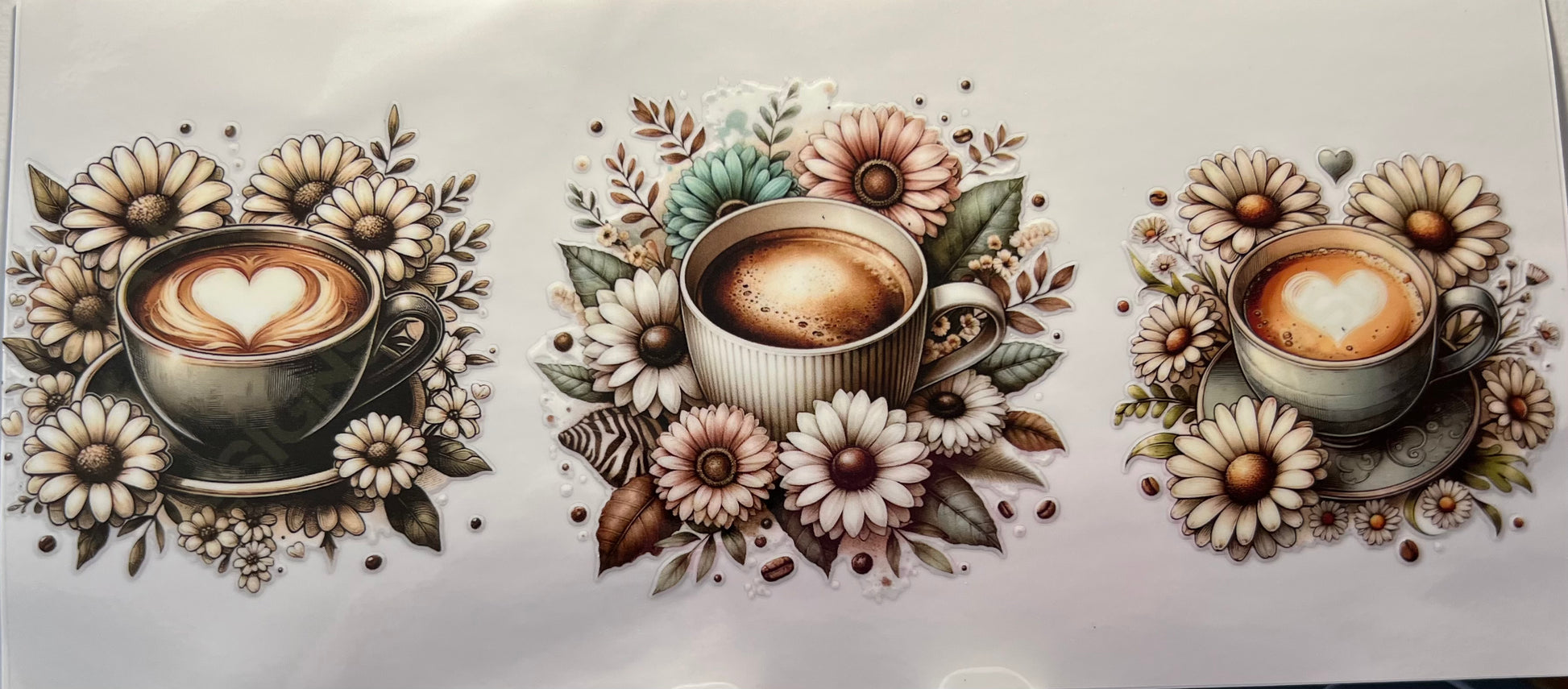 16oz UV DTF Wraps for Children's Drink Bottles or Snow Globes - Coffee and Daisy