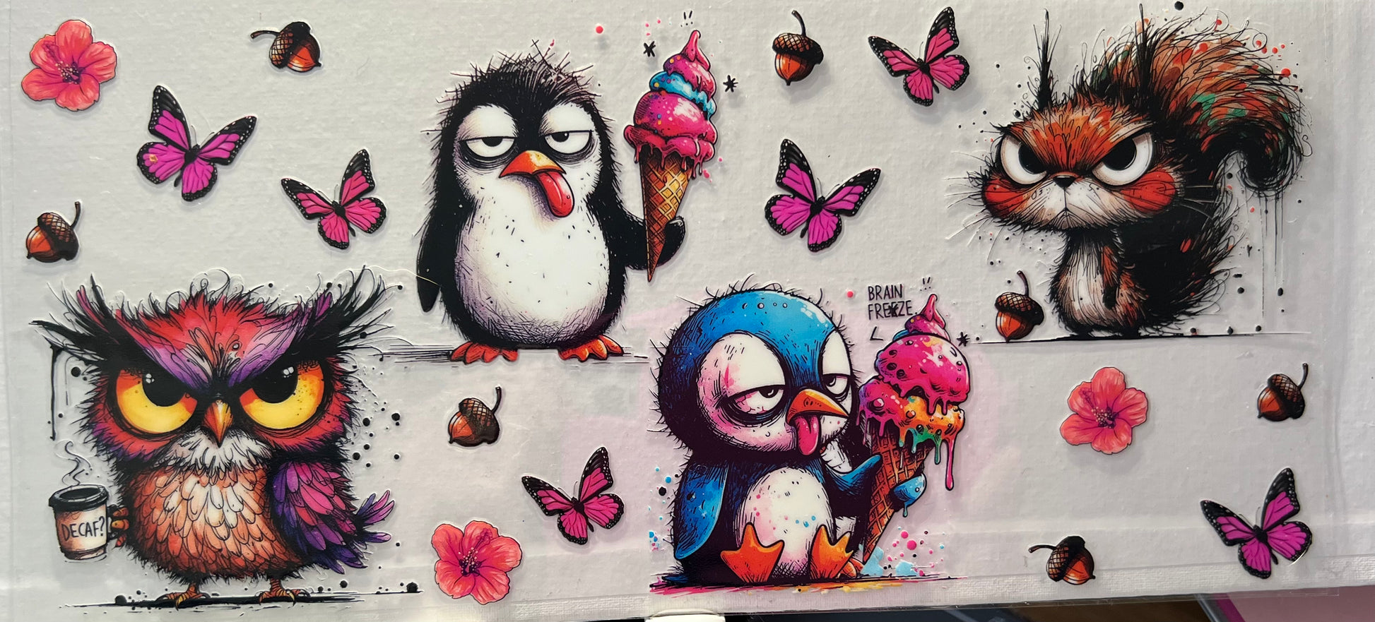 16oz UV DTF Wraps for Children's Drink Bottles or Snow Globes - Crazy Animals with Brain Freeze