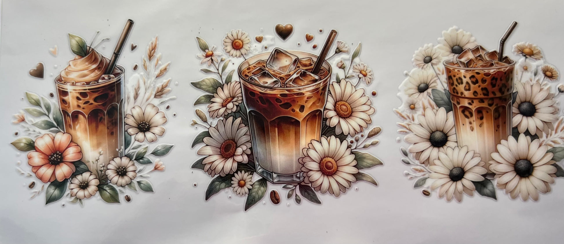 16oz UV DTF Wraps for Children's Drink Bottles or Snow Globes - Iced Coffee and Daisy