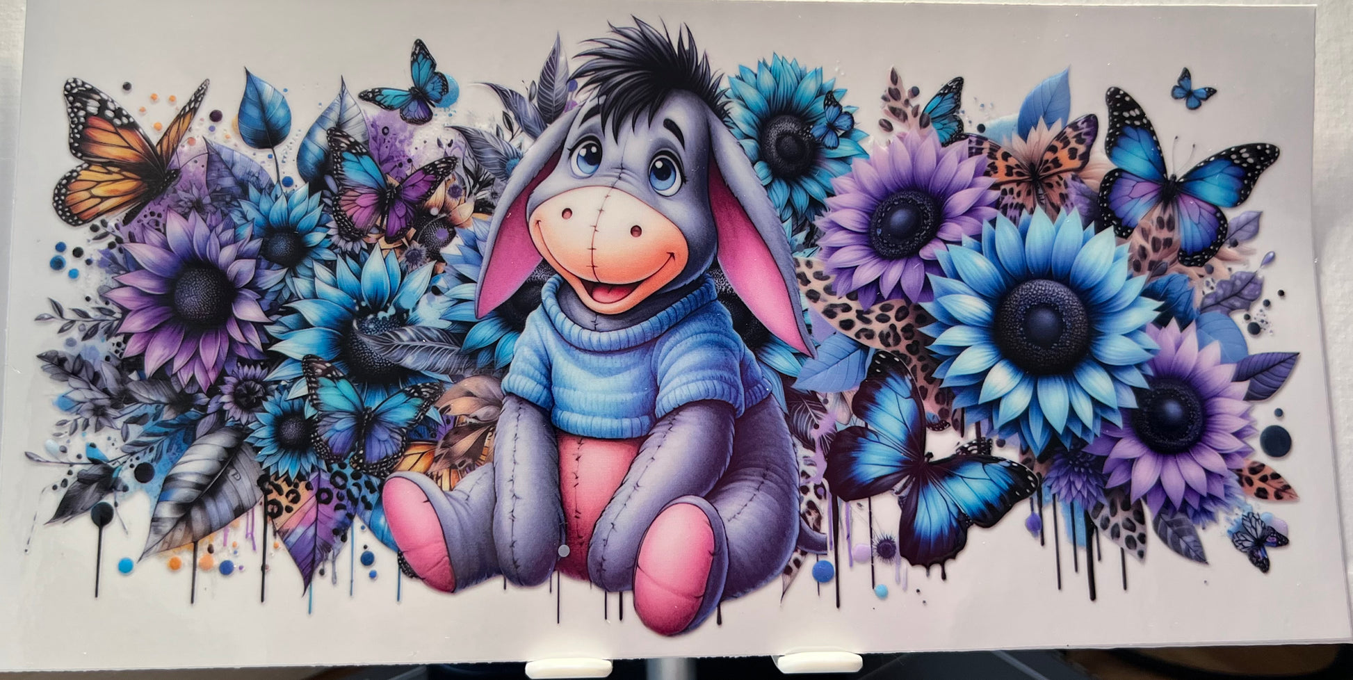 16oz UV DTF Wraps for Children's Drink Bottles or Snow Globes - Eyore and flowers