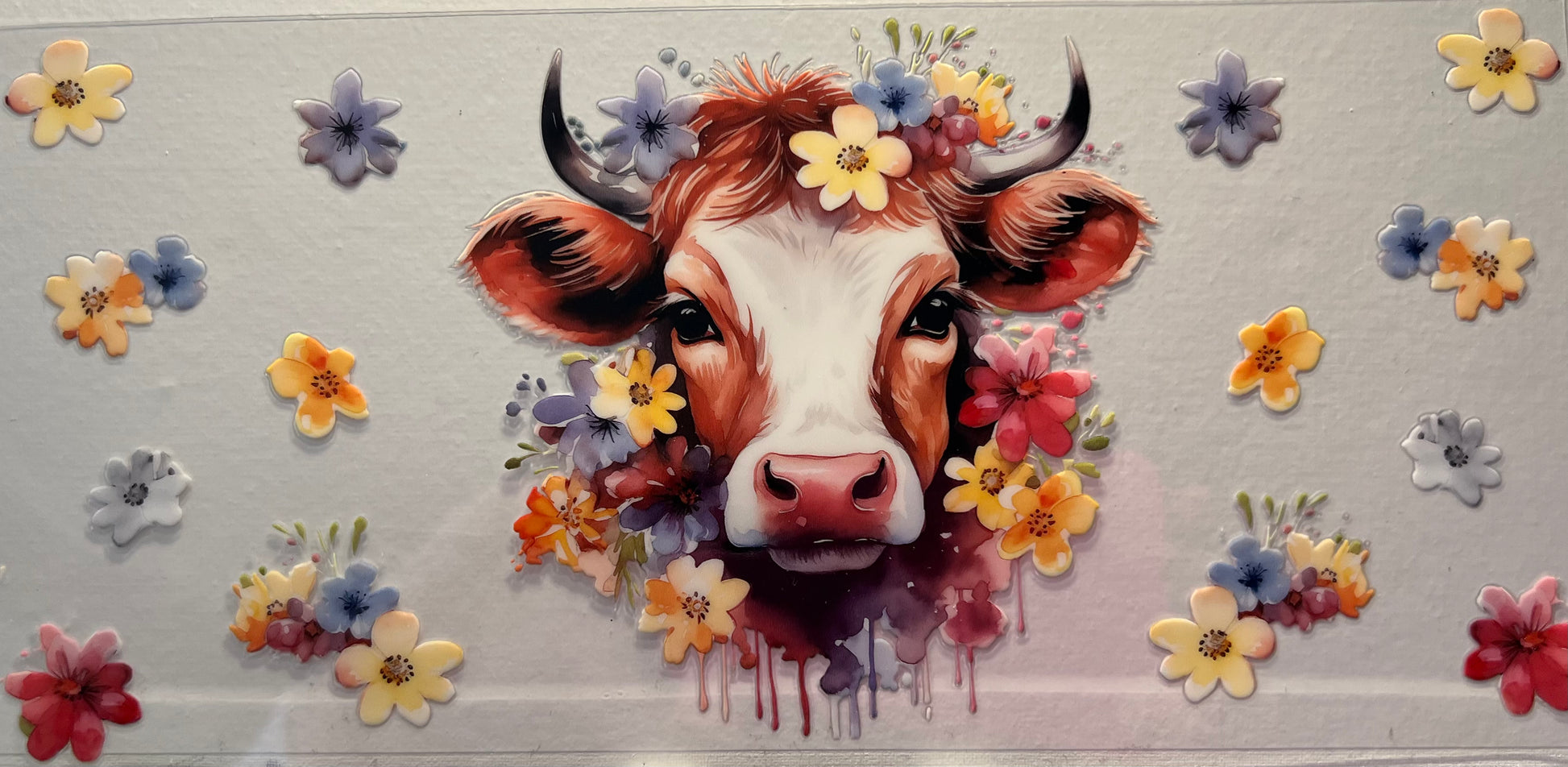 16oz UV DTF Wraps for Children's Drink Bottles or Snow Globes - Jersey Cow, Pastel Flowers and Head Dress